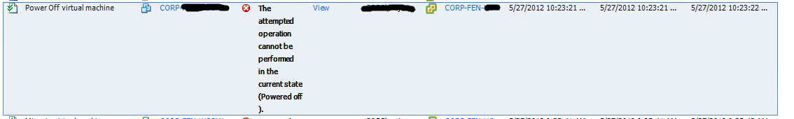 We had an issue the other day with our filers and because of it, some our machines orphaned themselves and VMware didn’t know what to do with them. If I tried to power off the machine I would get the error,