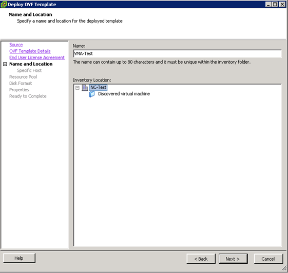 - Name your VM and then choose the inventory location for the VM. Click “Next“.