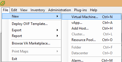 1. In vCenter click “File” then “New” then “Virtual Machine”