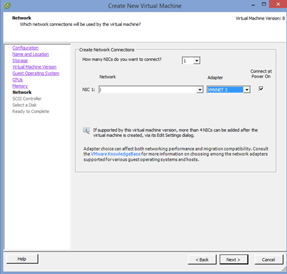 9. Choose your Network and change the adapter to “VMXNET 3” then click “Next”.