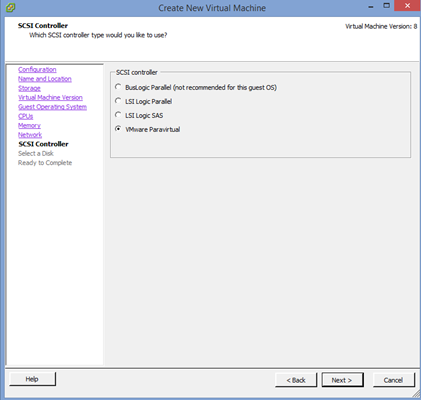One thing to note in reading some other posts like this one…http://www.davidklee.net/2014/01/08/retrofit-a-vm-with-the-vmware-paravirtual-scsi-driver is that he doesn’t recommend having the boot volume be Paravirtual because the Paravirtual driver is dependent on the VMware tools and is not native to the OS.
