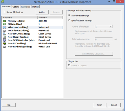 15. Click on the Video Card and then change the radio button to “Auto-detect settings”.
