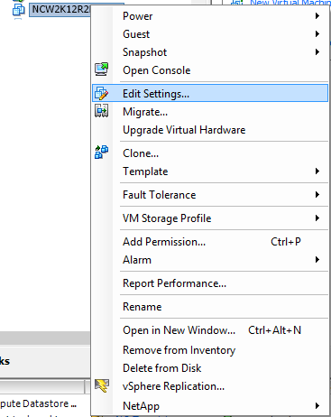 17. Right click on your newly created VM and click “Edit Settings”.