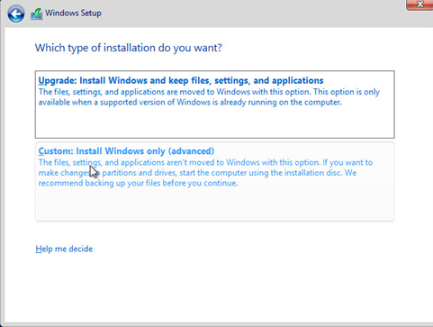 28. Choose “Custom: Install Windows only (advanced).
