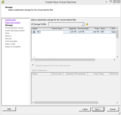 4. Choose the datastore for the VM and then click “Next”.