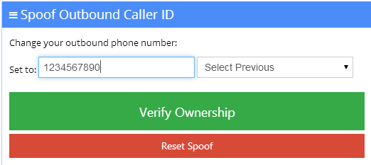 We need to Spoof our Google Voice number when we call out, so instead of using the new Versalink number on the caller ID of who you are calling…it will look like your old Google Voice. Click on Numbers and then click Spoof Caller ID. Put your Google Voice number in the “Set to” box and then click the Verify Ownership box. Versalink will call your Google Voice number now and ask you to enter a code.