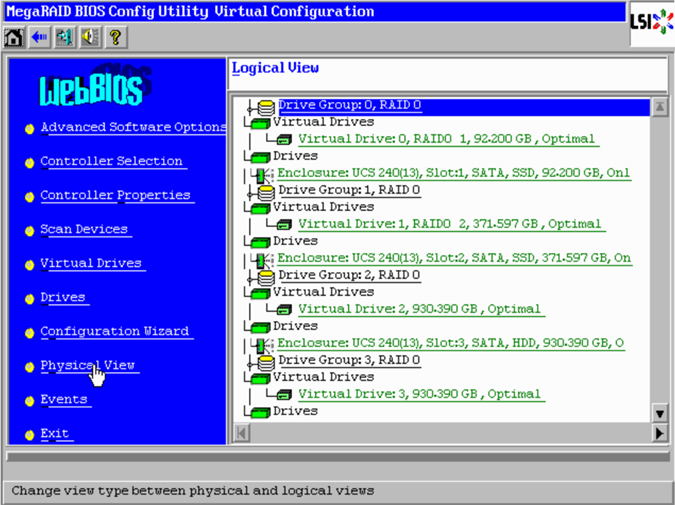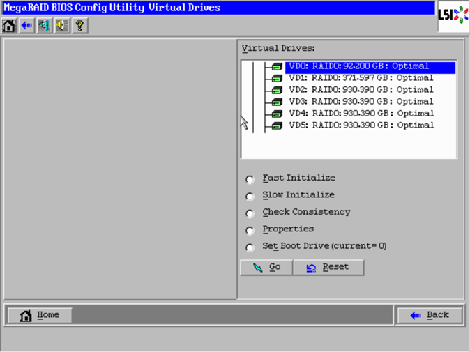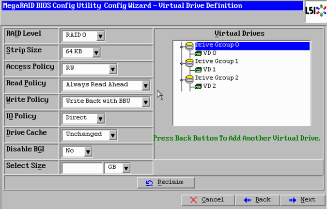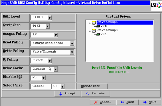 - I already have Virtual Drive 0 configured for my ESXi OS. Virtual Drive 1 has my 400GB disk I am using for VSAN caching. I have four unconfigured disks that I want to use for my capacity tier.