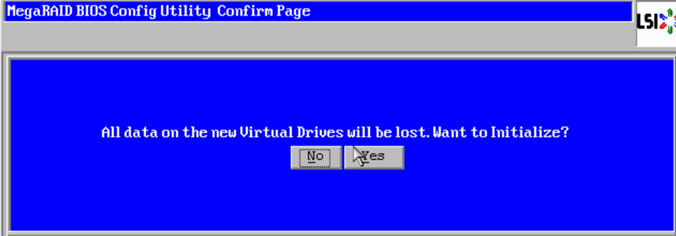 Acknowledge that you know that data will be lost on the new virtual drives. Click “Yes”.
