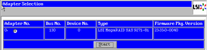 In the past I have configured a LSI MegaRAID SAS 3108 – Cisco 12G SAS Raid controller with 1GB FBWC module. When I set that up, I just passed through control to VMware. The MegaRAID SAS 9271-I is different; here is how I set them up. I used VMware KB2111266 for reference on configuration settings.