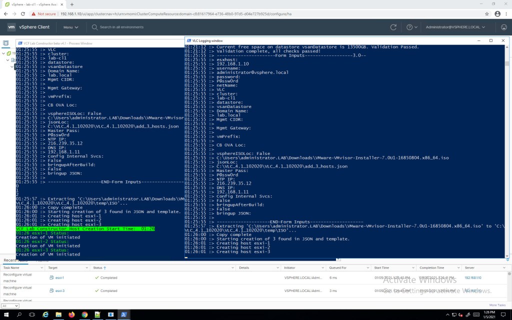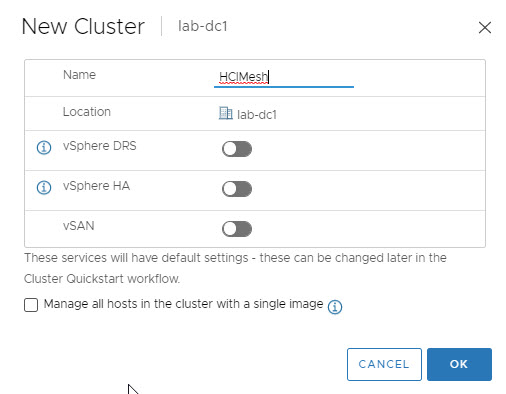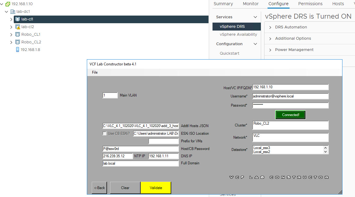 It has been a long time since I posted anything new, I will be looking to get back on top of posting things consistently for 2021. I have been using VLC for almost a year now and it has come a long way since its humble beginnings. I have deployed many different VMware Cloud Foundation (VCF) environments using this tool, but I also use it to quickly deploy virtual hosts for other testing. For my example today I will be deploying 3 hosts, adding them to a cluster, and then I will turn on HCI Mesh (Datastore Sharing) to use the storage of my physical vSAN cluster.