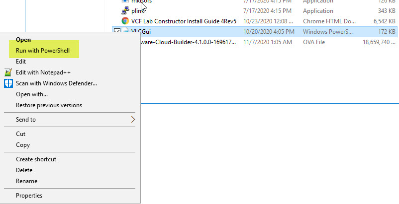 Next, right click on the Powershell Script “VLCGui” and then select “Run with Powershell”.