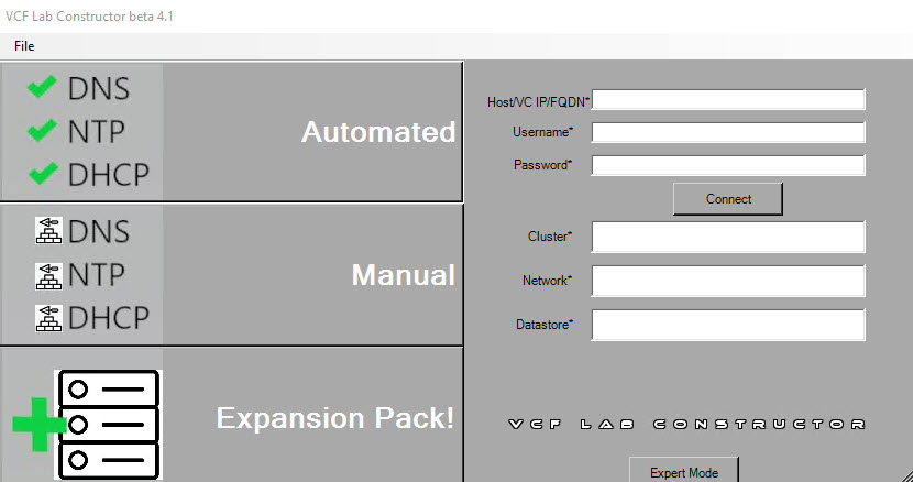 The Lab Constructor GUI will appear. Choose the “Expansion Pack!” option.